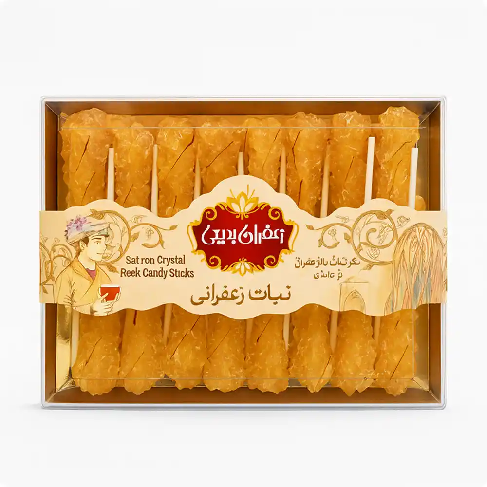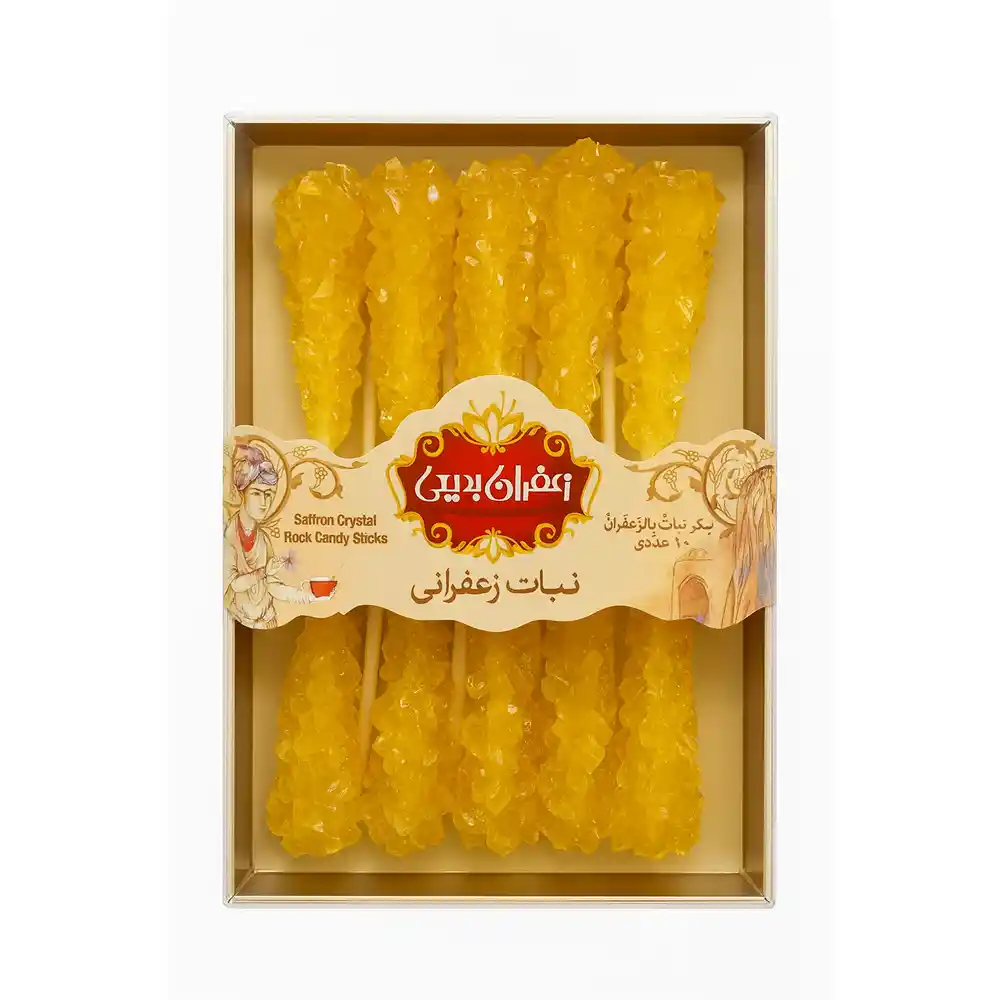 نبات زعفرانی بدیعی از زعفران مرغوب ایرانی و شکر خالص تهیه شده و طعمی دلپذیر و طبیعی دارد.